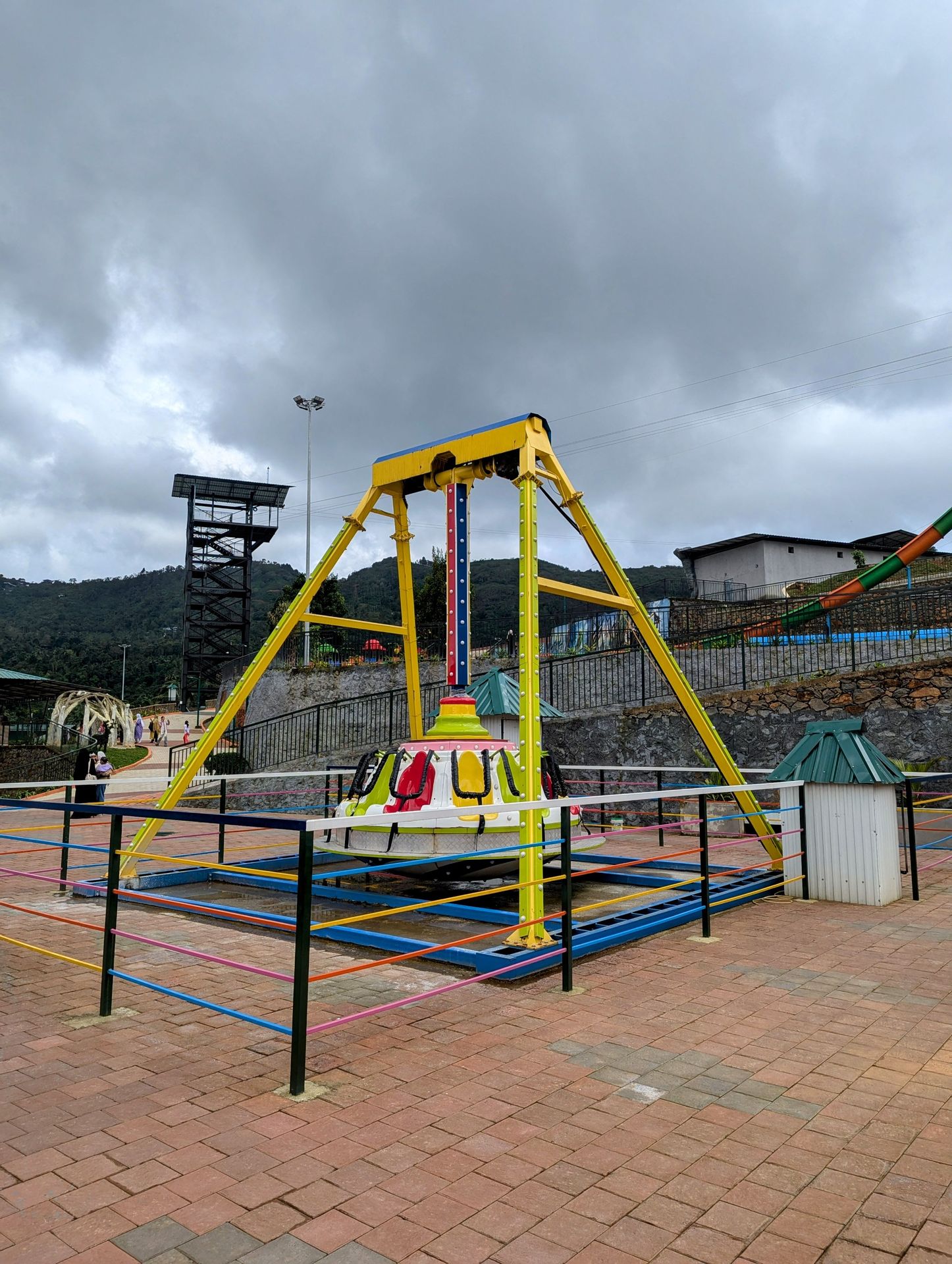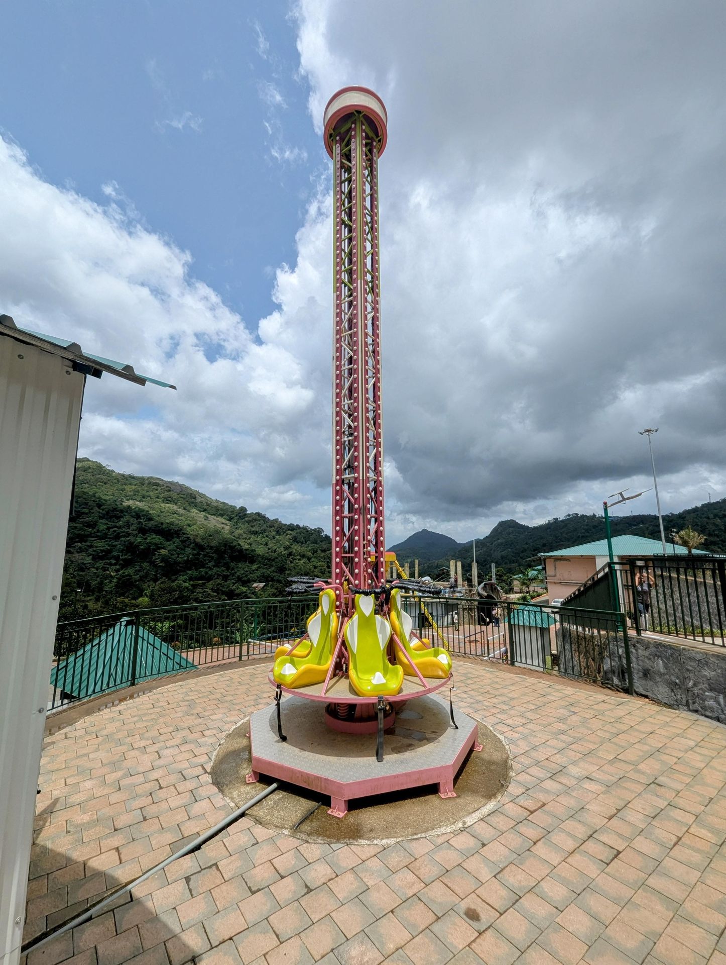 The Revolving Tower lifts you high with a gentle spin, offering kids a bird's-eye view of the park! It’s a calm and fun ride that’s perfect for younger adventurers who want to enjoy a safe, sky-high experience.